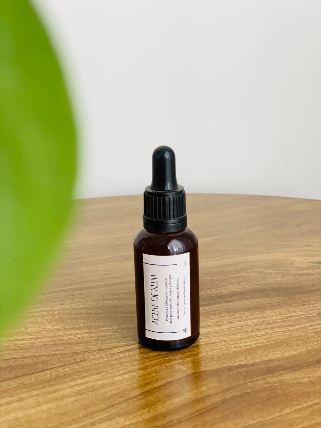 Aceite puro de neem. Remedio 100% orgánico. Contiene 30ml. Ideal para tratar hongos, cochinilla, pulgones, etc.
