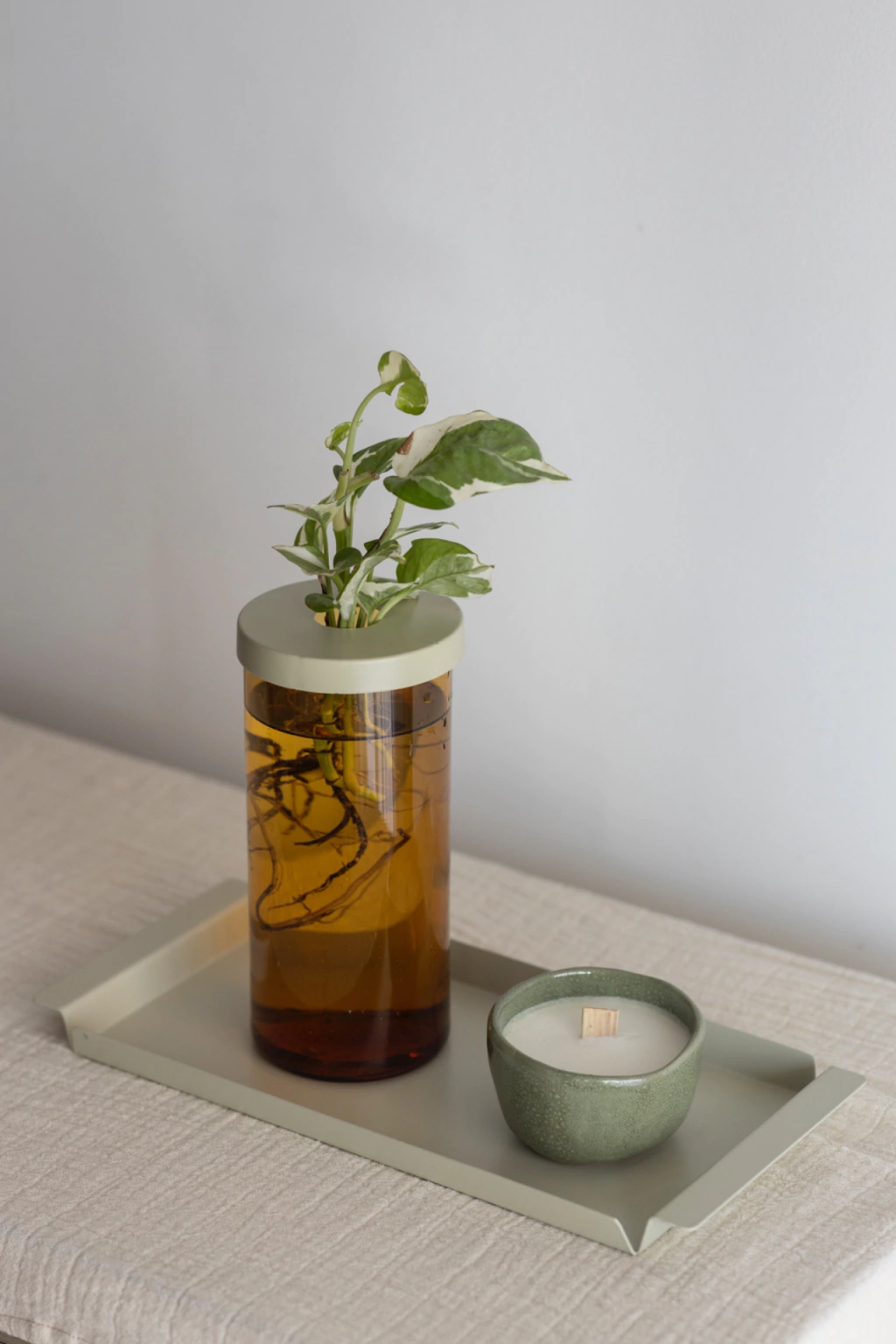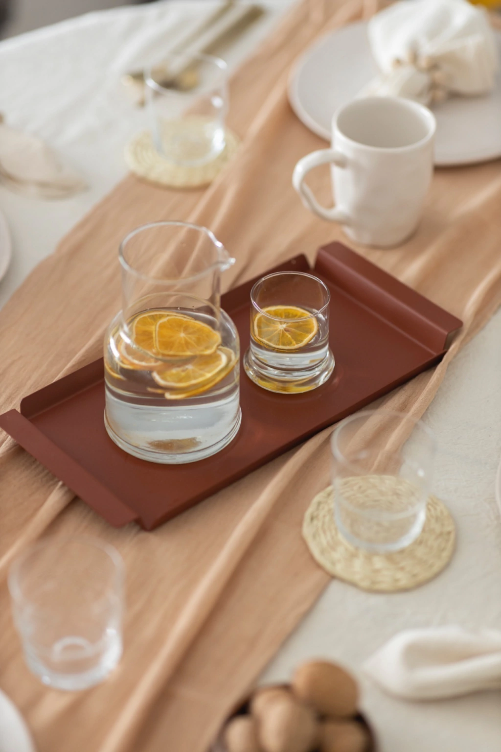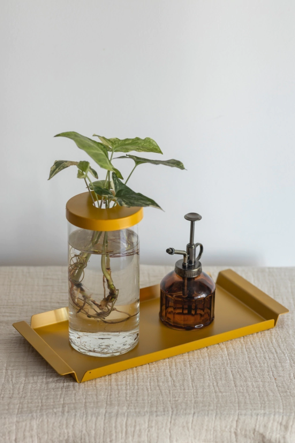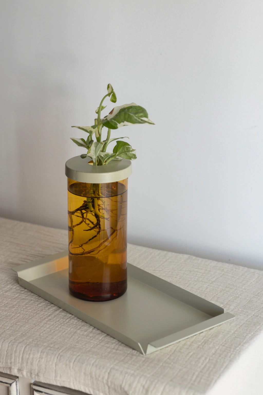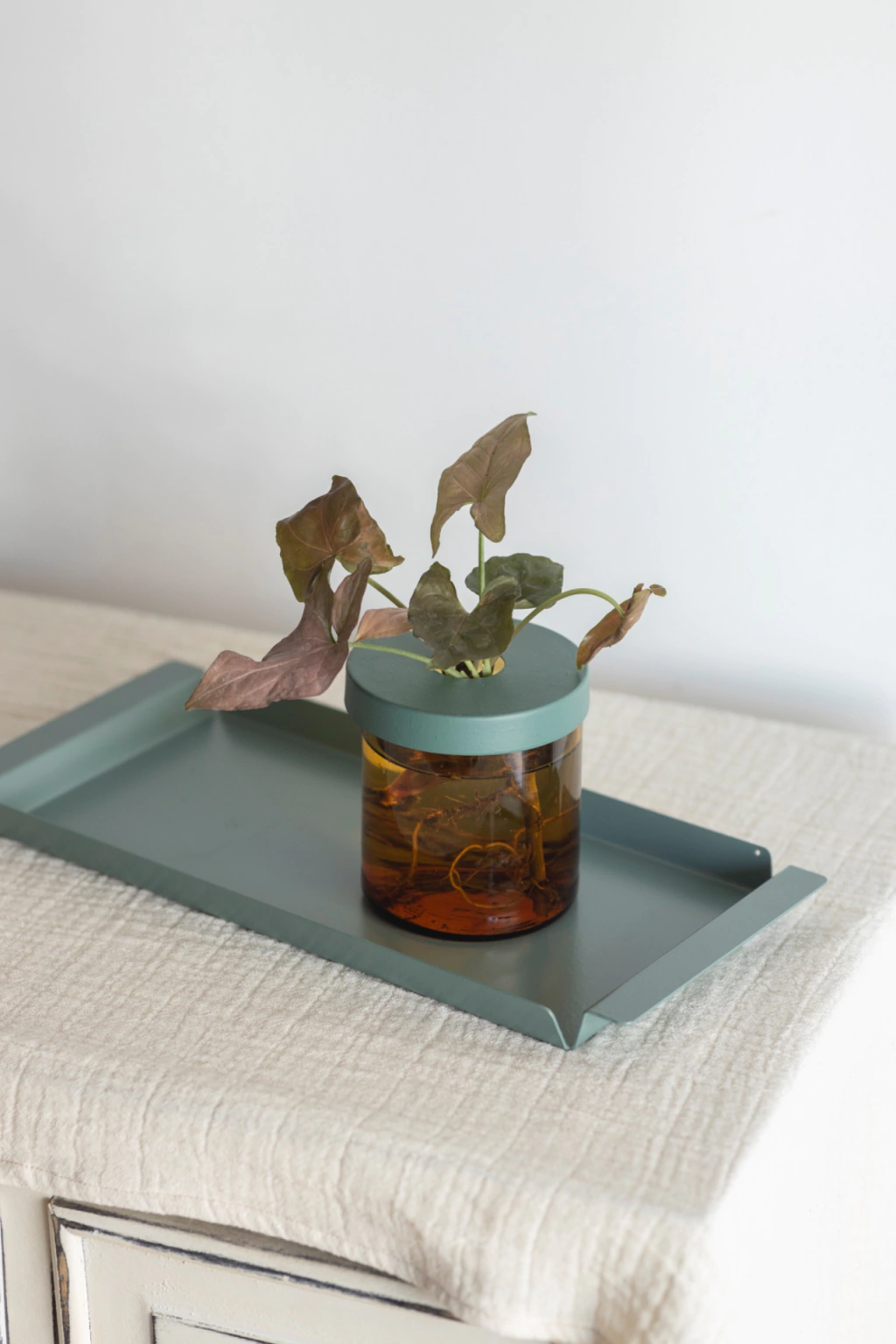 Bandeja metálica con agarre esmaltada con pintura de horno. Simple y estética. Ideal para resaltar y destacar objetos o para servir mesas.