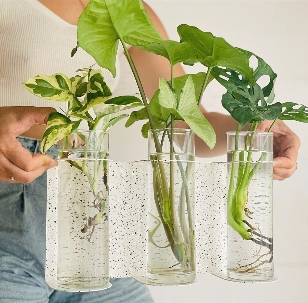 El Hidroterrario Triple Hidra es una pieza artesanal de metal esmaltado con pintura al horno, pensada para llenar de verde y vida tus paredes. Su diseño permite colgarlo fácilmente o apoyarlo en estantes, repisas o muebles, adaptándose a distintos espacios. Incluye tres tubos de vidrio removibles, perfectos para plantas en agua o flores frescas. Podés elegirlo con o sin gajitos, según tu preferencia.