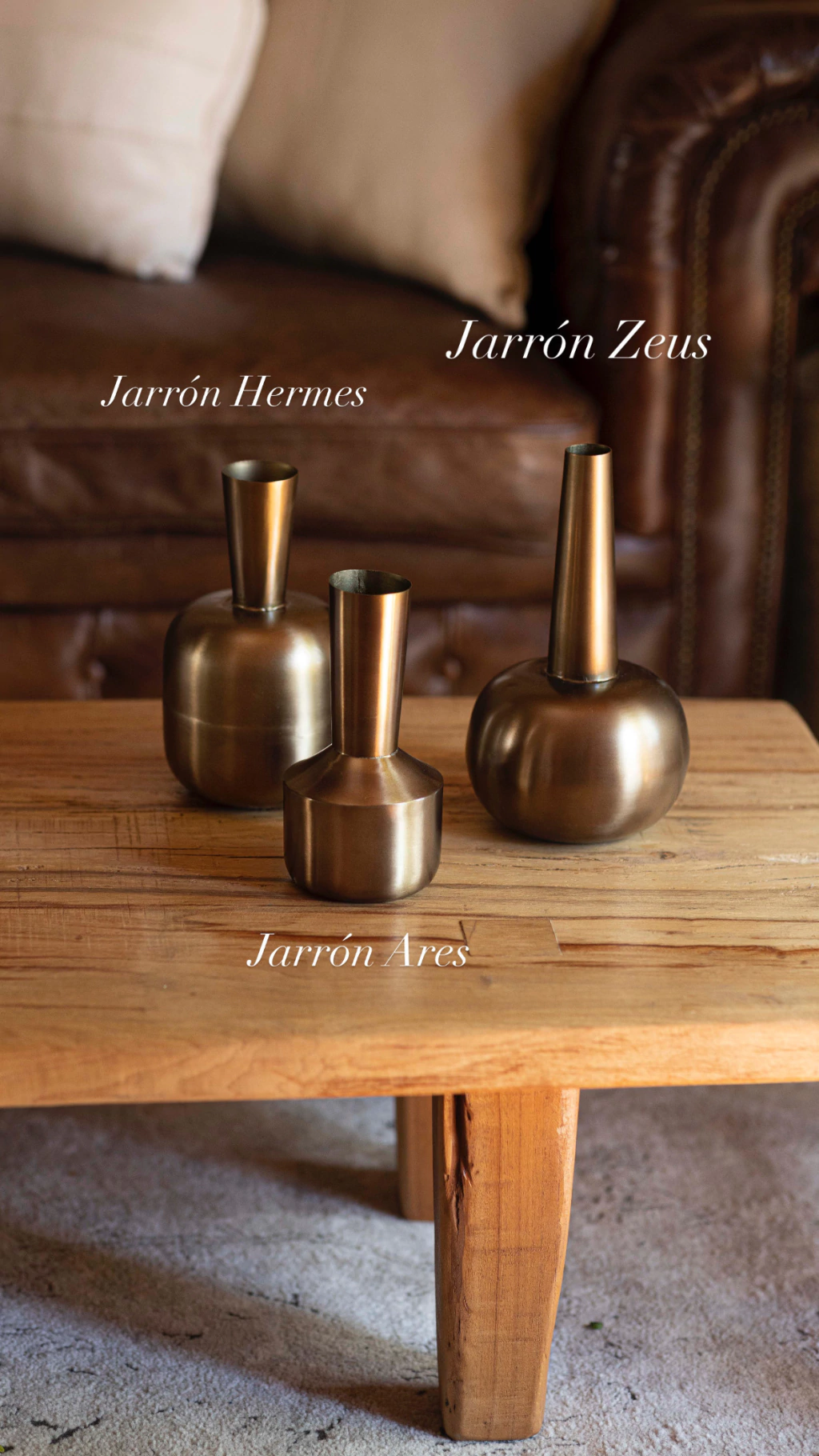 Florero metálico color bronce. Tres formatos disponibles, se venden de a uno.