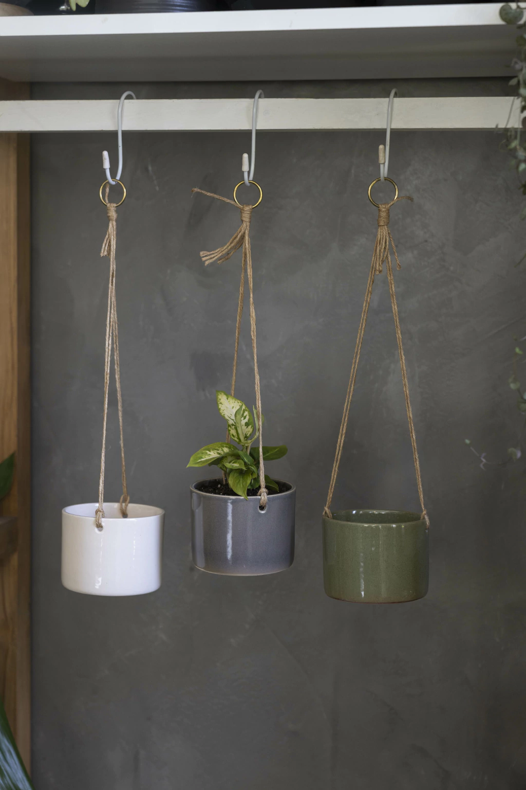 La Maceta Colgante Chica está confeccionada en cerámica esmaltada, con un formato cilíndrico y un delicado colgante de hilo de yute. Es una pieza artesanal pensada para aprovechar el espacio en altura y sumar verde en interiores o exteriores techados. Incluye orificio de drenaje y se recomienda plantar por debajo del hilo de yute para mantener su durabilidad. Su diseño combina lo natural del yute con la suavidad del esmaltado, creando una pieza equilibrada y cálida para cualquier rincón.
