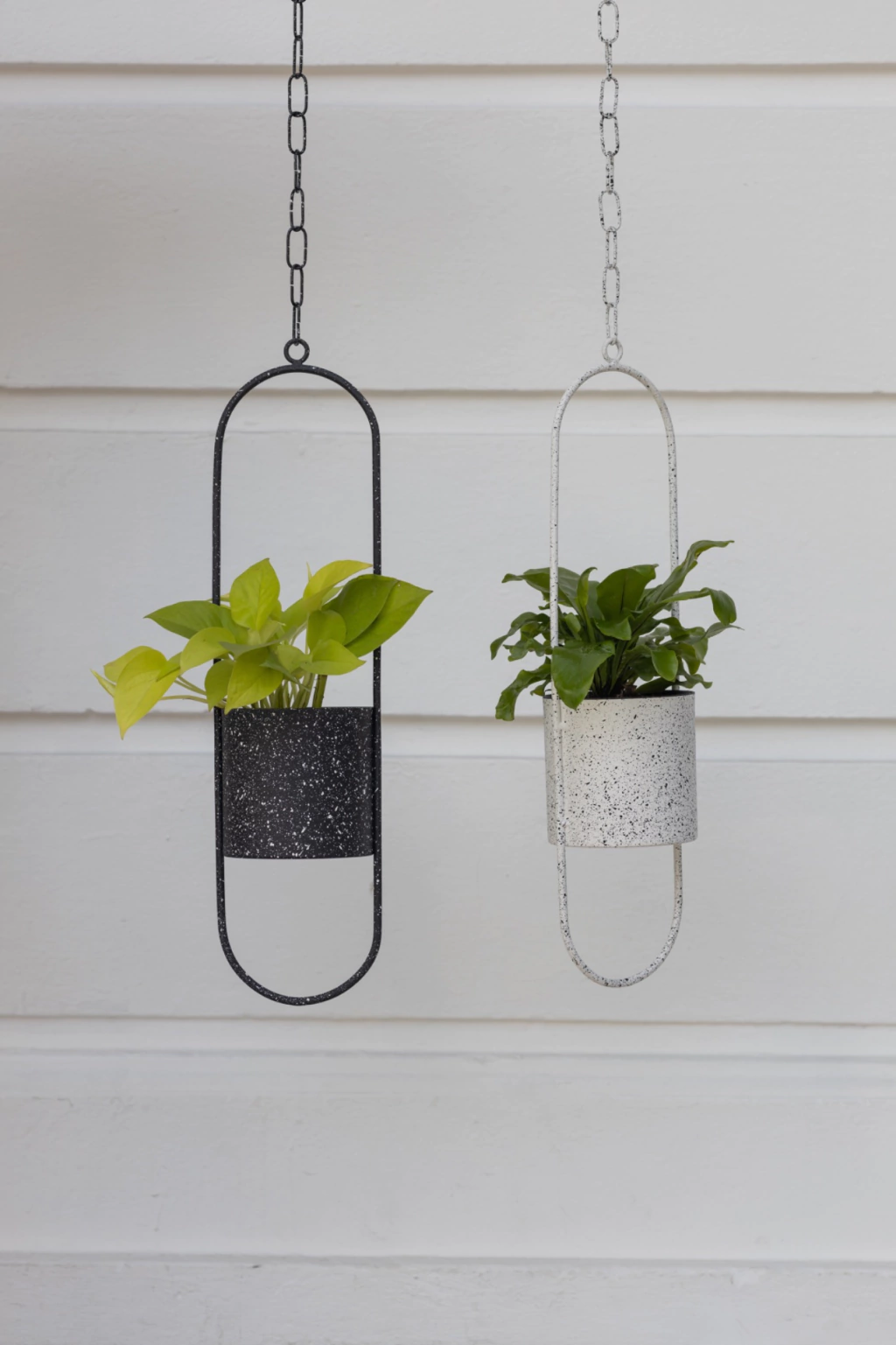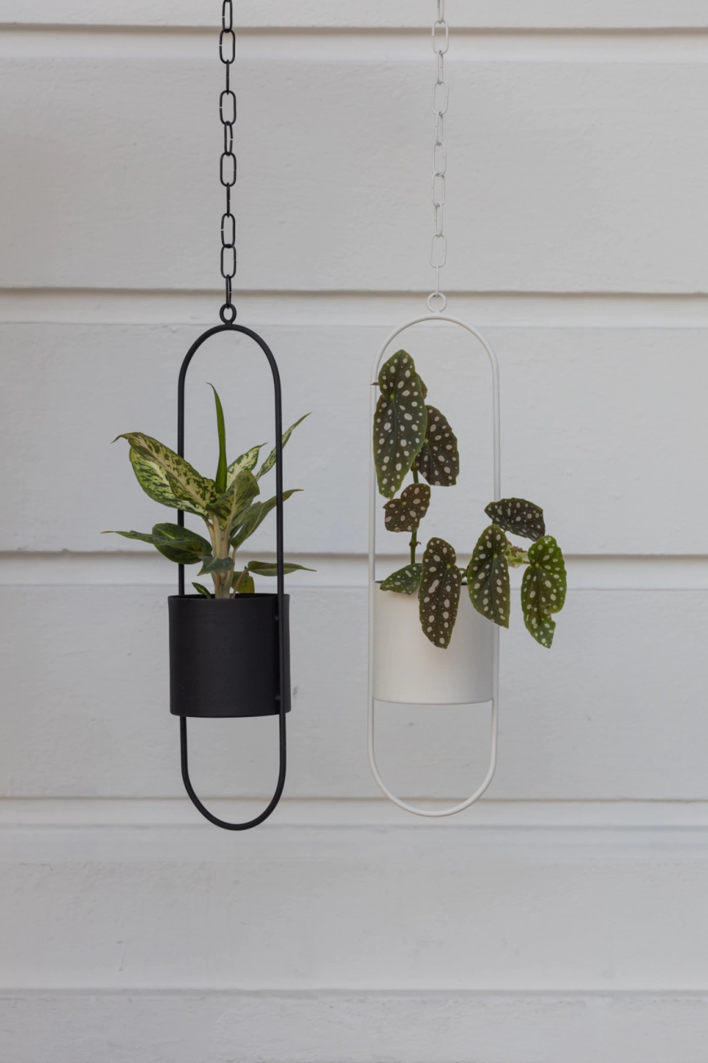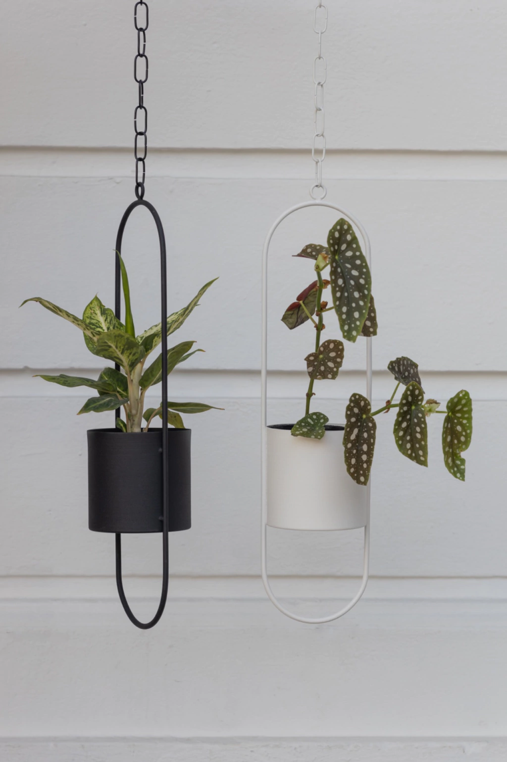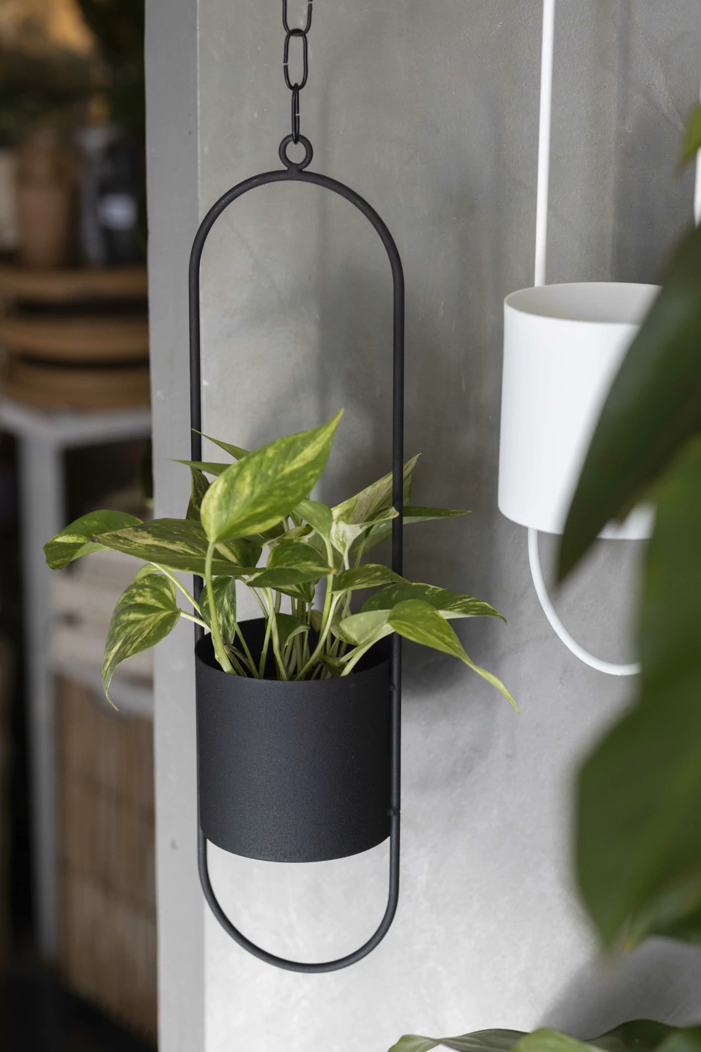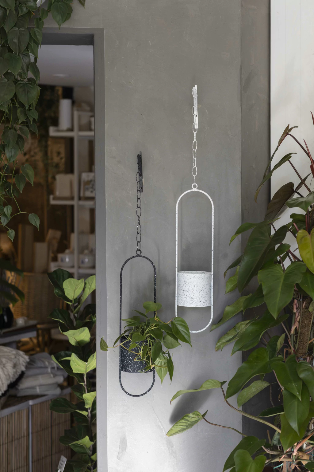 La Maceta Colgante Moon está realizada en chapa esmaltada con pintura epoxi horneada, lo que le otorga resistencia y un acabado duradero. Su diseño colgante, acompañado por una cadena del mismo tono, la convierte en una pieza decorativa ideal para sumar verde en altura y realzar cualquier rincón.