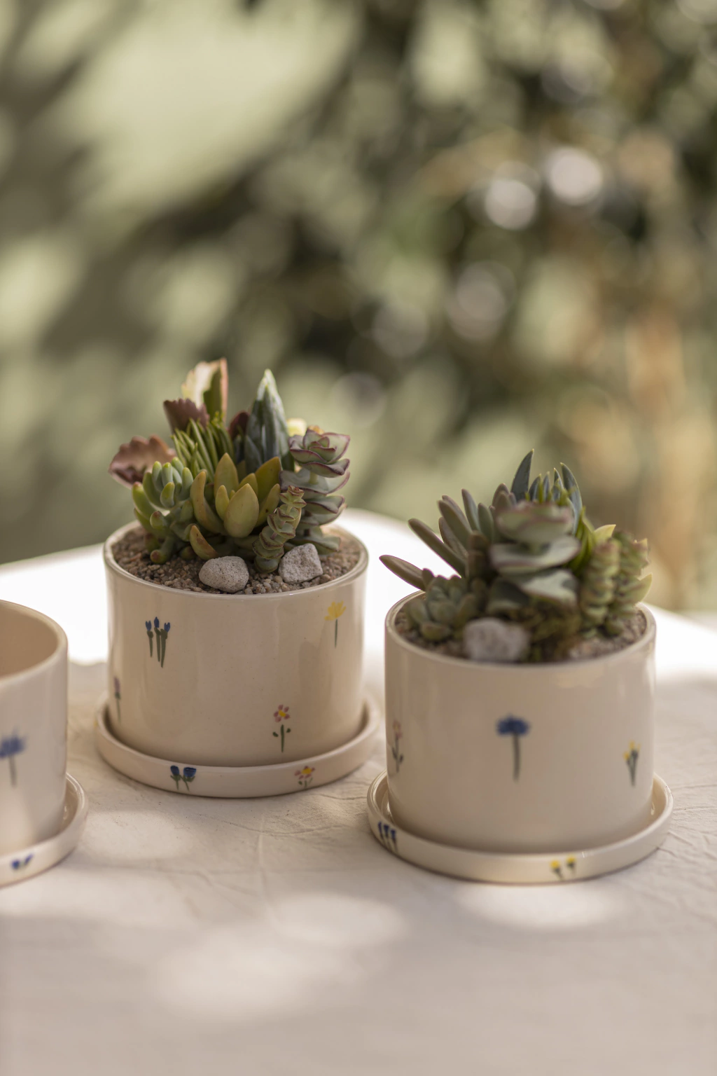 La Maceta Flora está realizada en cerámica esmaltada a mano y presenta un delicado diseño floral que la hace única. Viene con plato incluido, ideal para proteger tus muebles y sumar un detalle de color y textura a cualquier rincón del hogar.