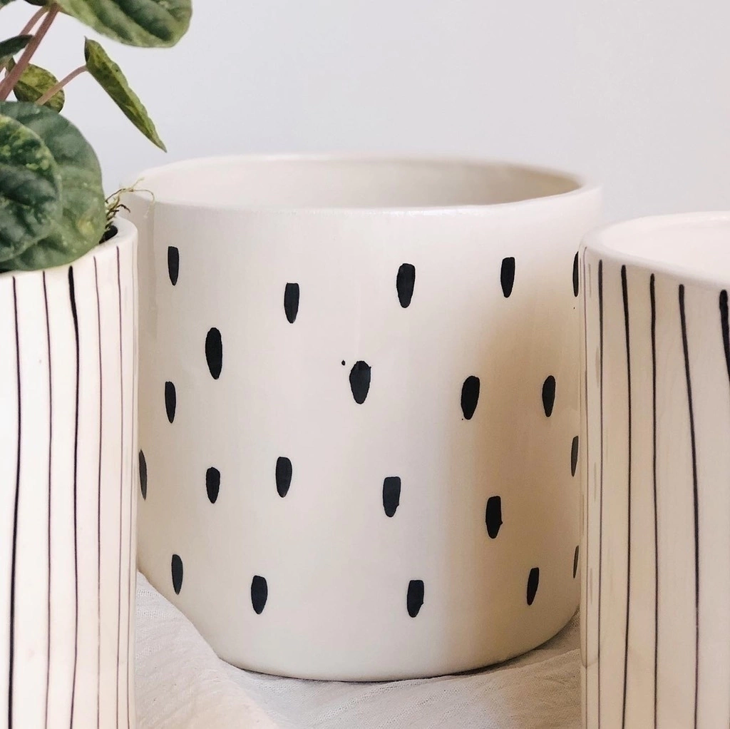 La Maceta Pureza está realizada en cerámica esmaltada, con un formato cilíndrico simple que resalta por su delicadeza. Disponible en dos tamaños y tres diseños distintos, es una maceta versátil que podés usar en interiores para sumar un detalle fresco y natural. Viene con orificio de drenaje para acompañar el buen crecimiento de tus plantas.