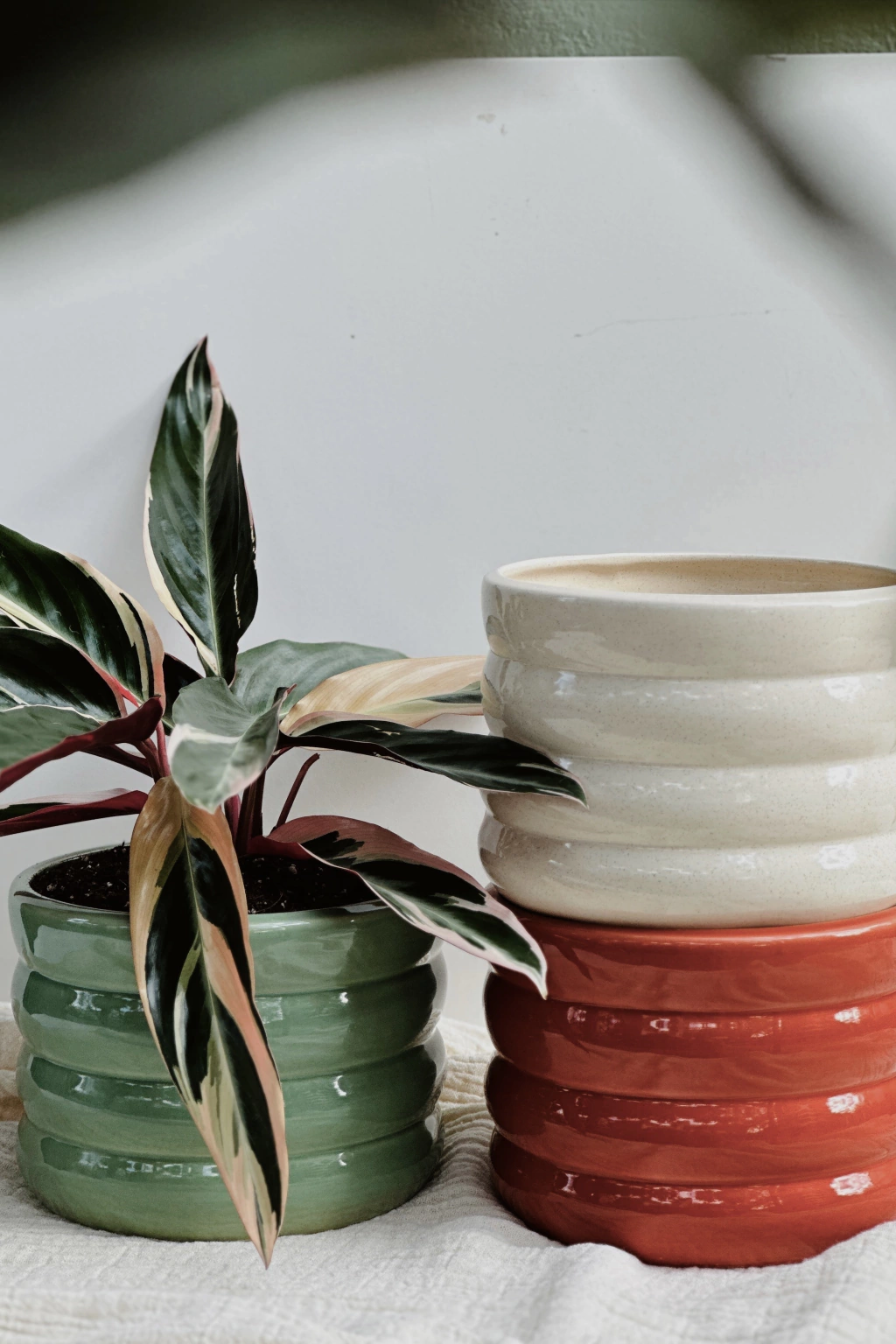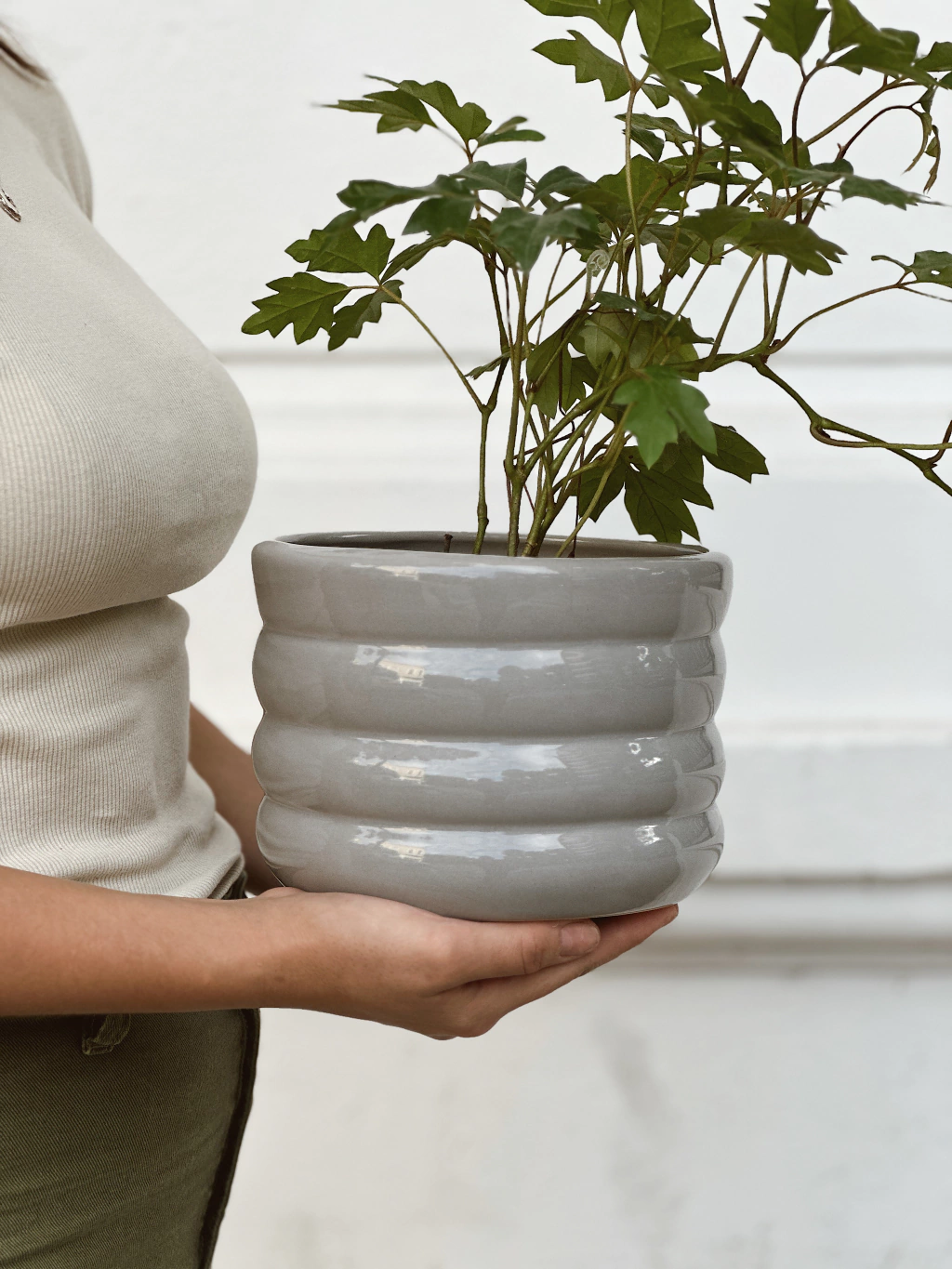 La Maceta Oruga está realizada en cerámica esmaltada con textura de formas redondeadas que le otorgan un carácter original y distintivo. Incluye orificio de drenaje y, por su tamaño, es ideal para plantas de porte mediano que quieran lucirse en livings, mesas auxiliares o rincones luminosos. Disponible en una amplia paleta de colores, combina diseño y funcionalidad en una pieza decorativa única.