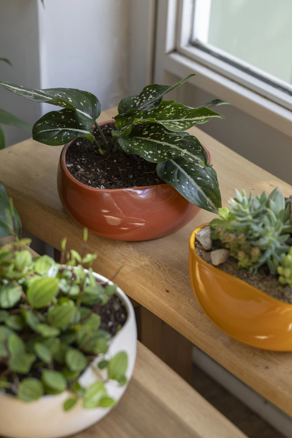 La Maceta Serena Chica está realizada en cerámica esmaltada a mano, con una forma asimétrica que la vuelve única y diferente. Su diseño artesanal y sus curvas suaves aportan equilibrio y calma a cualquier ambiente, combinando estética y funcionalidad. Incluye orificio de drenaje para cuidar las raíces y facilitar el riego. Cada pieza puede presentar sutiles variaciones en el esmalte y la forma, reflejando su proceso manual y su carácter singular.