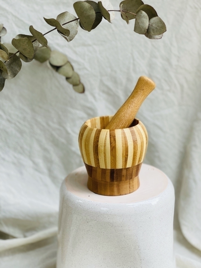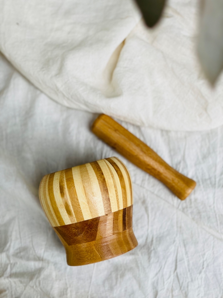 Mortero de madera de bamboo. Dos tamaños disponibles.