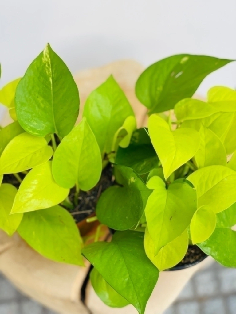 El Potus Limón, conocido científicamente como Epipremnum aureum "Lemon Lime", es una planta colgante/trepadora originaria de las regiones tropicales del sudeste asiático. Pertenece a la familia Araceae. Conocido también como "Planta de la alegría", sus hojas son de un tono amarillo alimonado.
